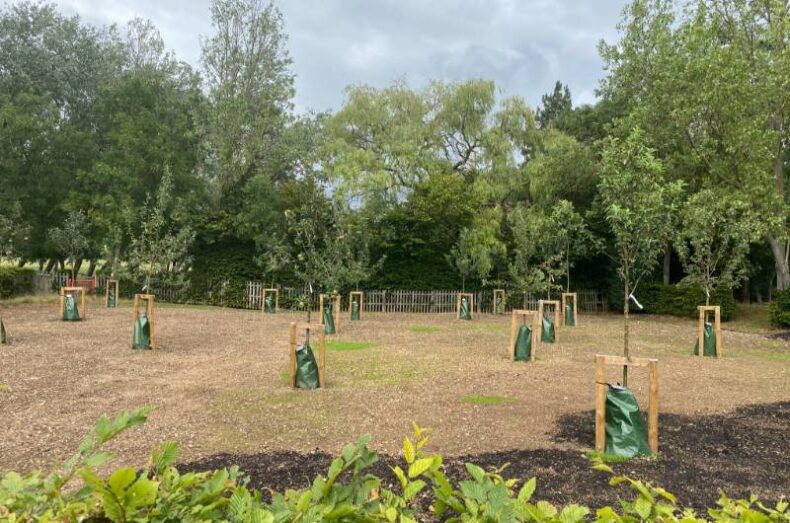 Snuggly tucked behind a hedge, live 20 young apple trees. This Chelmsford City Parks project, led by our head ranger, aims to create a welcoming community area where locals can sit and maybe read a book and/or get involved and connect through conservation volunteering, and even have the chance to take some apples home!